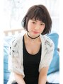 黒髪風グレイッシュセピアで暗い髪でも透明感を。あごラインのボブならハネない、困ったときは結べる。前髪は毛先を少し不揃いにすることで重く見えにくい。似合わせのポイントはTOPから【こだわり】ページへ!!