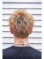 6:4で前髪を立ち上げてかき流した目力アップのすっきりショートスタイル。トップは立ち上げてひし形シルエットにすればハチ張りの方も骨格補正効果で引き締まった印象に。カラーはハニーアッシュで明るく陰影を。もちろん黒髪でもマッチします。