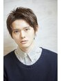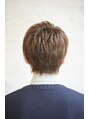 センターでわけアップバングにすることで清潔感とすっきりとした印象のショートレイヤー。ウェットの質感と、トップは軽さを出しスパイキーに毛束を遊ばせているので落ち着き過ぎないカジュアルな大人スタイルです