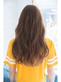 重めのワンレングスロングに人気のうざバング、顔回りに作ったレイヤーで雰囲気アップ。柔らかいハニーベージュカラーがつやつやに見せてくれます。ウェービーに巻いてシアバターやオイルを揉みこんでしっとり仕上げます。(BAYROOM横浜)
