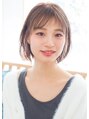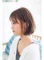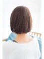 【気に入って頂いたスタイルは、ブックマークをしてご提示ください】アゴラインの前下がりボブ。丸みシルエットのボブに、ベージュブラウンが重く見えがちな硬い髪も柔らかく見えます。幅広い年齢のお客様にご来店して頂いてます