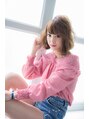 ふわボブアッシュベージュ。水パーマで上からゆるふわ感をだし夏っぽく透明感をカラーで出します。【miel hair blanc】