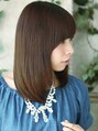 毛先がはねても、品良く見えるように意識したカットラインが特徴。 甘くなりすぎないようにトップもスリークに!! やや、前上がりのローレイヤーベースで前髪は重めの下ろし流し。 重めなので目力アップ効果も発揮!!{町田東口.町田駅}