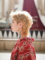 ブリーチをしてミルクティーベージュをのせ、ツヤっぽいカラーに。スタイリングした時に動きが出るようにカットで束感を作りました。襟元があいたシャツやはっきりとした色の洋服がとっても似合います。[町田東口/町田駅/町田]