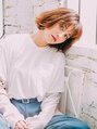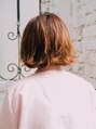 表面に動きが軽く出るようにレイヤーを少し入れて、内側は重めに、外側は軽い印象になるように!! 前髪はあえて隙間ができるようにカットをしています。前髪からの肌の透け感を大事にしたスタイルになっています!{町田東口.町田駅}