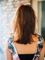 ガーリーになり過ぎないようにセンターパートにすることで大人の女性感をだしています。 外ハネも軽やかにみえ、浮遊感がでます。 カラーはほんのりバイオレットでツヤカラー☆[町田東口/町田駅/町田]