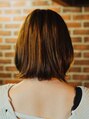 肩につくくらいのボブにカットしハネて重たくならないように毛先の質感を調整しました。カラーは人気のショコラベージュに。ブリーチしないベージュ系のカラーにするなら、一度10~12トーンくらいから暗めに染めてあげるにがオススメ。