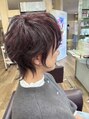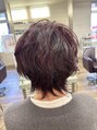 30代~50代におすすめの大人ショートウルフ。トップにふんわりボリュームを出し、襟足に動きを残した女性らしいシルエット。軽やかな質感で、ショートでも柔らかく上品な印象に仕上げています。赤みを活かした艶カラーで、大人女性の肌映りもグッド!
