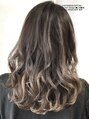 高品質なハイライトグラデーションカラーに、ヌケ感のあるローポニーテールアレンジでおしゃれ感を出してます☆