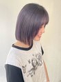 ブリーチ2、3回している髪を、ラベンダーグレーに◎カットは切りっぱなしのミニボブ。ぱつっとしたラインにこだわってカットしました!ハイトーンカラーとボブの組み合わせが、可愛いスタイルです◎