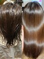 ブラシでのブローやアイロンなしの乾かしただけの仕上がりです☆今まで出会ったことのないあなた史上最高の美髪に!!お家でシャンプーして乾かしたらツヤツヤ、サラサラの髪にさせていただます☆縮毛矯正がパサパサになる、ツンツンになるなんて過去の事!