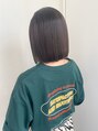 耳周りの髪を1回ブリーチして、グリーンにしました◎イヤリングカラーなら、色がはっきりしたカラーも挑戦しやすいです!カットは切りっぱなしボブ。真っすぐなラインにこだわってカットしています◎
