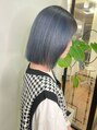 ペールブルー◎ブリーチ3回程必要です!色落ちも、とっても可愛いスタイルです!カットは切りっぱなしボブ。真っ直ぐなラインにこだわってカットしています◎
