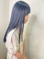 「ネイビーカラー」ブリーチ2、3回しているので、色味がしっかり出ます◎色落ちも、とっても可愛いスタイルです!カットは切りっぱなしボブ。真っ直ぐなラインにこだわってカットしています◎