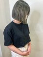 カットは切りっぱなしボブ。顎ラインで切り、すっきり見えるようにしました◎カラーはブリーチ2回程している髪を、オリーブグレージュにしました!