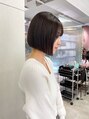 切りっぱなしボブ。後ろを短くして、首周りがすっきり見えるようにしました。カラーは暗めのグレージュカラー◎