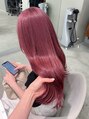 ブリーチしている髪をピンクカラーに◎髪の状態により、ブリーチの回数は変わって来るのでご相談ください!女の子らしい、可愛いピンクカラーに