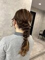カジュアルだけど『やってる感』のあるぽんぽんと三つ編みの編みおろしです^^中に逆毛を入れてサイドから見ても丸みのある頭に☆【ロング・スーパーロングの方におすすめ☆】