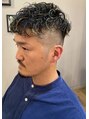 サイドからバックにかけてスッキリ刈り上げ、トップは長さを残しパーマとハイライトで動きをつけたメンズスタイルです。