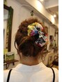 結婚式参列のお客様☆可愛いですよねー全体に波ウェーブを作ってからまとめています☆アップヘア パーティーヘア セットアップ パーティーセット シニオン