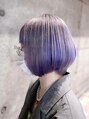 カットベースはナチュラルなショートボブ。ブリーチ後にペールラベンダー、そして毛先には更に特殊カラー(塩基性カラー)でブルーバイオレットをランダムにオン!一味違ったペールカラーが可愛い!髪質改善 クレドガーデン浦和048-711-1674