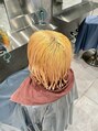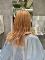 今回はピンク系の残留が残っていてオレンジっぽいベースを赤味のない「シアーベージュ」にカラーチェンジしました。毛先までブリーチが必要だったので「スペシャルケアブリーチ」で施術させていただきました。
