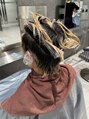 伸びすぎたブリーチの根本を活かして「シャドールーツ」今後ブリーチはやめていく方向なので、根本部分はカラーせずに「シャドー」部分を暗く染めてデザインんしました。