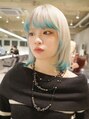 ホワイトベージュベースにターコイズのエンドカラーを合わせたデザインカラー。ミディアムレイヤーで動きと軽さをプラス。ブリーチで作る透明感カラーです
