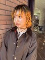 毛先にブリーチ毛が残っているボブにパーマをかけて、イエローをオンカラーしました。