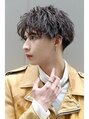 サイドとバックをスッキリとさせたマッシュバランスにスパイラルパーマをかけて、センターパートにスタイリングしたスタイルです!