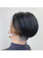 刈上げマッシュスタイルに、deepなブルーブラックカラーとハイトーンベージュのイヤリングカラーが映えるスタイル◎