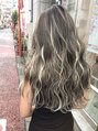 アッシュベースの地毛にホワイトのハイライトを全体に入れました★