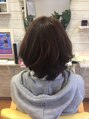 カットはボブベースに重さを残しつつ軽さも出し、毛先カール、カラーはイルミナカラーのベージュ、アッシュ。より一層柔らかくキュートさが引き立ちます。