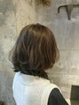 ミディアムボブのヘアスタイル。おさまりやすいようにグラデーションを入れトップのみレイヤーで動きを足しています♪カラーはカーキグレージュ系のカラー◎