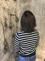カラーは新緑をイメージしたカーキグレーカラー◎ヘアカラーで柔らかい雰囲気出ます♪スタイルは前上がりのロブスタイル♪ 前上がりはフォルムの軽さにも繋がりますし、前下がりや切りっぱなしに飽きてしまった時にもオススメ◎