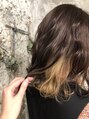 bob×インナーカラー。全体は、パープルグレーの優しい色合いに。インナーカラーは、透明感のあるホワイティアッシュ。こちらはブリーチが2、3回必要です。アレンジが楽しめるカラーです。