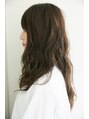 ダークグレーカラーでおとなしめのカラー☆ ハーフカラーで透明感のある綺麗なお色です☆ ロングスタイルでゆるふわに巻いてトレンドスタイルに!前髪を薄めに作ってシースルーバングにすることで軽さをだしています。