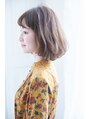 顔まわりに入れたレイヤーが小 顔効果ありのミディアムレイヤー。ふんわりとパーマをかけて柔らかいフェミニンな雰囲気に☆ミルクティーカラーで透明感のある柔らかい印象をプラス。バングのアレンジもご相談ください。