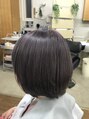 バッサリ30センチカットして夏モードに!自分でセットしても簡単にまとまるようにローレイヤーを入れて毛先を少し軽く!カラーは一回ブリーチしてからアディクシーのパープルガーネットをメインに黄色みがでない様に。最先端おしゃれヘアの完成です(笑)