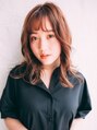全体をゆるくウェーブにして、顔まわり、表面の毛束をミックスで巻いたセミロングスタイルです。バングを薄く短めにすることで、軽さとエアリー感をプラスしています。色は根元を少し暗めにして、グラデーションにすることで立体感をだしています。