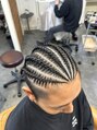 頭皮のラインを美しく見せるコーンロウスタイル。サイドからバックはすっきりフェードで仕上げ、編み込みの立体感と清潔感を両立しています。ダンスやストリート系ファッションとも相性抜群で、個性をしっかり主張できるスタイルです。