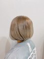 しっかりとブリーチ後、透明感と柔らかさを出す為にバイオレットシルバーで外国人風カラーに♪スタイルは、女性らしさの感じる丸さのショートボブ♪