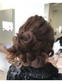 シニヨンセットのハーフダウンスタイル髪の毛が多いのでルーズに作りすぎないようにしてます