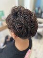 膨らみやすい髪質なのでトップなどの部分はボリュームを出しハチの部分やサイドはボリュームを抑えパーマ