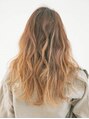 ランダムに巻いてゆるふわに。パーマをかけるとスタイリングしやすくなります。スタイリング剤はミルクを使用し、質感は柔らかく抜け感を出し、前髪はかき上げてクールでかっこいい印象に。カラーは外国人風グラデーションカラーで透明感をプラス。