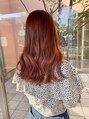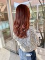 オレンジとピンクが混ざったようなカラーで可愛い~☆ブリーチなしでも元が明るいとしっかり色も出やすいです◎