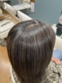 ハイライトで白髪ぼかししました。ベースは何も色は入れずにハイライトだけ全体にいれて、その後、ブリーチで金髪になったハイライトをグレージュにしました。とても素敵です。