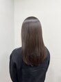 ヴァイオレットの効果で、パサつきがちな毛先まで潤って見える、極上の艶を実現しました。暗めのトーンでも重たくなりすぎず、光が当たった瞬間にふんわりとした柔らかさが生まれます。黄色みを消しながら色が抜けていくので、綺麗な色を楽しめます。