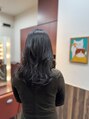 - 仕上げはコテでゆるやかに巻いて、ニュアンススタイルに。柔らかい動きが、ツヤをさらに引き立てます