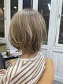 - バレイヤージュのベースに、ミルクティーベージュでオンカラー。軽めのレイヤーで動きをプラスします。